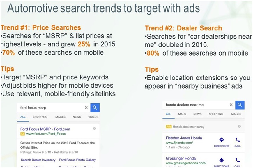 The automotive industry, in particular, has been drastically affected by these searches. In the past year, search interest for “car dealerships near me” has doubled. According to Google, interest in dealer phone numbers from these searches has risen nearly 80% year over year. It’s important for marketers at both the dealer level and at the OEM tier to take advantage of this opportunity, provide phone numbers, and enable customers to easily call them.