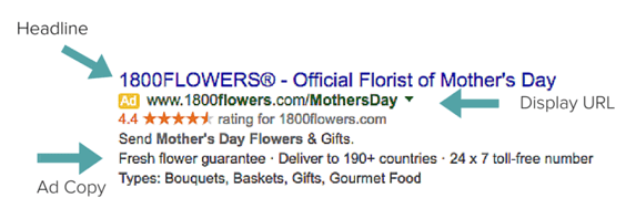 A typical search ad contains a heading, a link, and a short description of the offer the company is making: